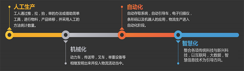 人工生产的比例逐渐降低,物流作业过程中的设备和设施逐步自动化。