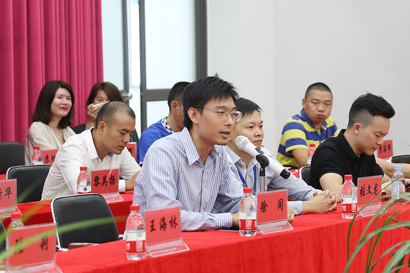在座谈上,麻豆三级视频科技总裁助理徐同表达了对东莞市经信局领导和总裁班企业家莅临我司的热烈欢迎和感谢,简述麻豆三级视频科技一路走来,能有今天的辉煌成就,实属不易,但前方的路还很长,今后仍不忘初心,继往开来,再创辉煌。