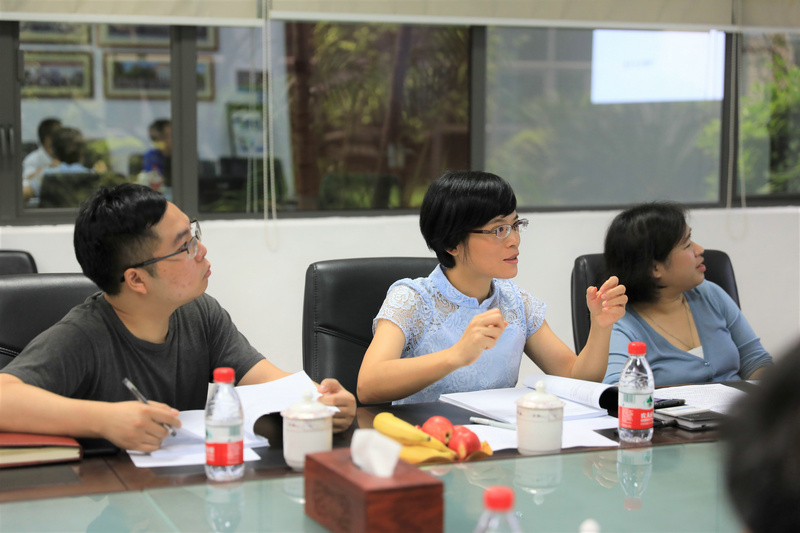▲松山湖科创局领导讨论项目市场应用情况