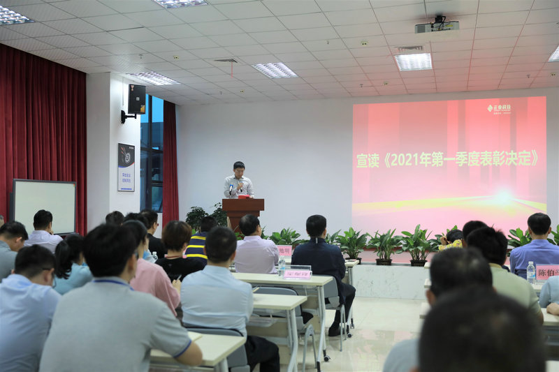 ▲总裁助理徐同宣读《2021年第一季度表彰决定》