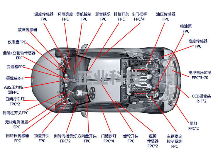 整车FPC用量将超过100片,动力电池需求FPC数量与面积远超原有整车车载FPC,新能源汽车的大发展带动车载动力电池用FPC需求大幅增长。