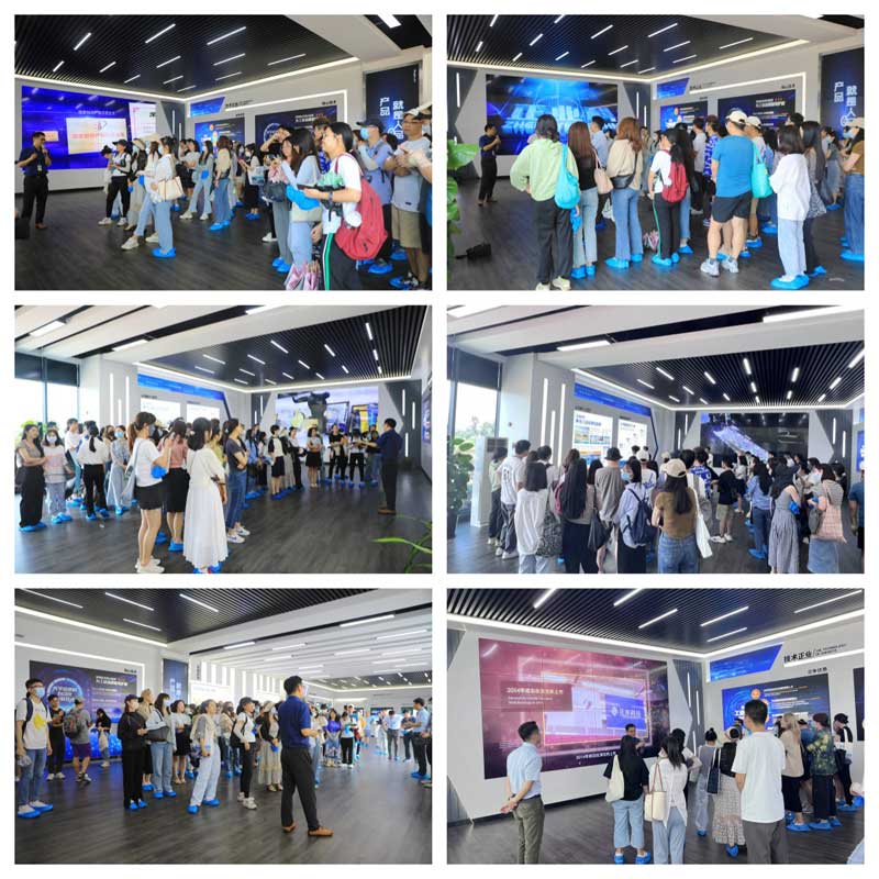 移动课堂的第一个环节--展厅参观,市场中心总监周亮先生向学生介绍了企业的发展历程、经营产品以及覆盖的行业领域。学生们都积极地和周总及现场工作人员互动交流,展现了强烈的求知愿望。