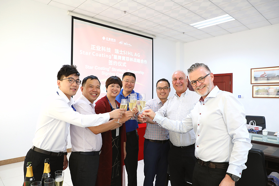 6月23日上午,广东麻豆三级视频科技股份有限公司(股票代码:300410)与业内知名公司瑞士SIHL AG 旗下Star Coating® 星牌黄菲林继续签订战略合作协议,进一步深化加强合作,共同拥抱中国电子信息市场的巨大机遇。