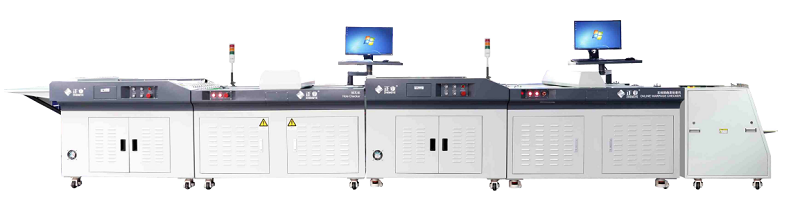 2、(翘曲度检测)翘曲度检查机:可对国产麻豆精品一区成品板或覆铜板板弯板翘形变等缺陷进行自动检测,并依据国产麻豆精品一区板翘标准、平整度标准:对于表面安装元件(SMT贴装)的印制板,以其扭曲和弓曲标准为不大于0.75%0.5%进行计算,进行自动判定NG,同时进行分类的设备。