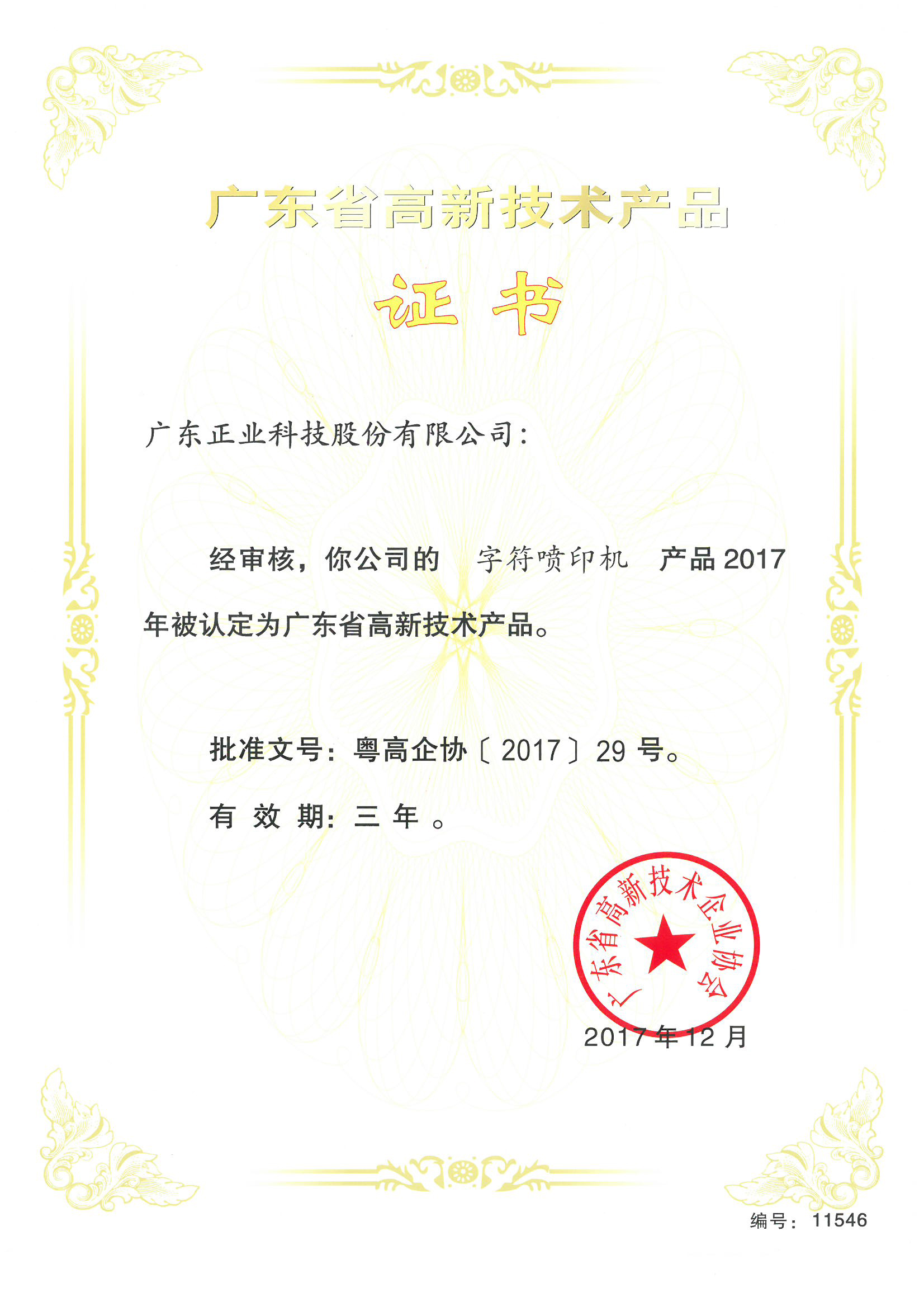 麻豆三级视频科技字符喷印机荣获广东省高新技术产品认证